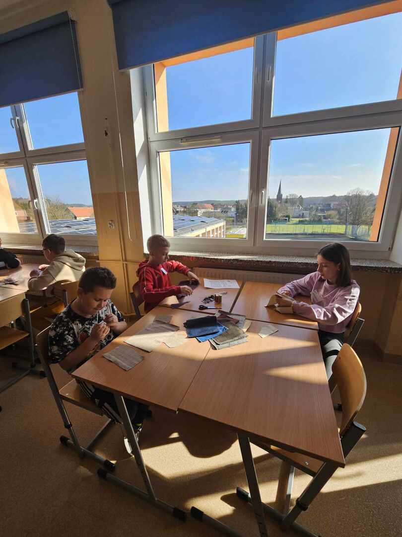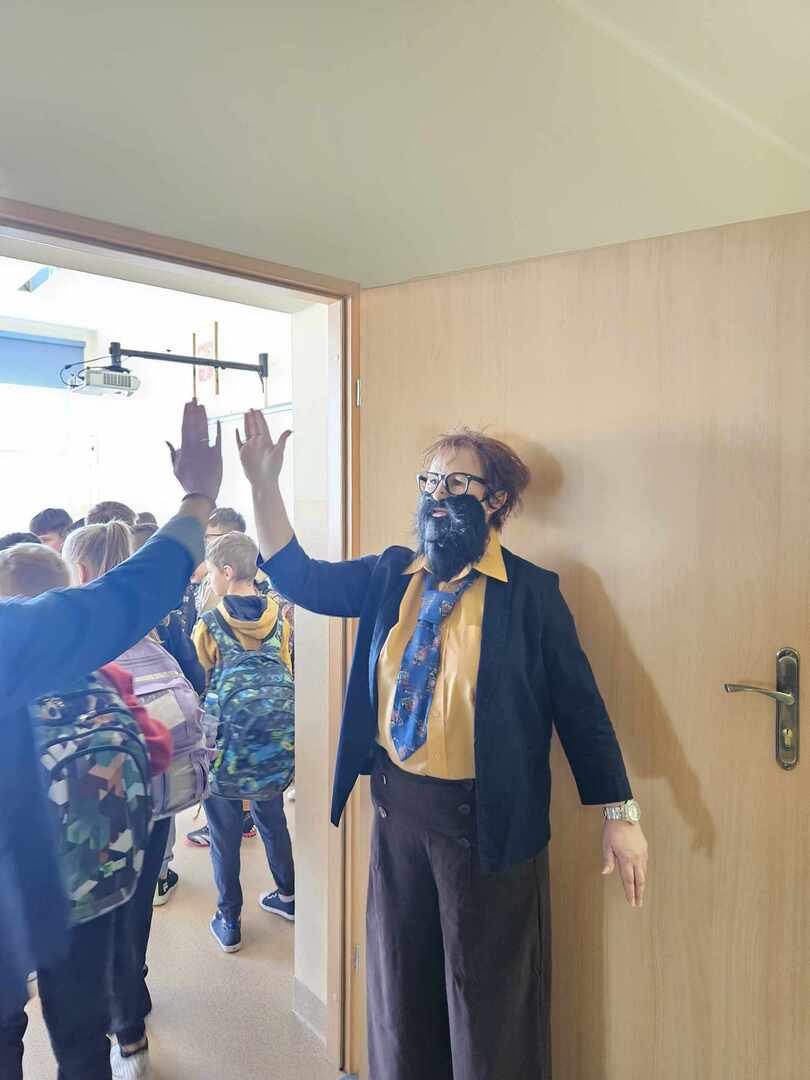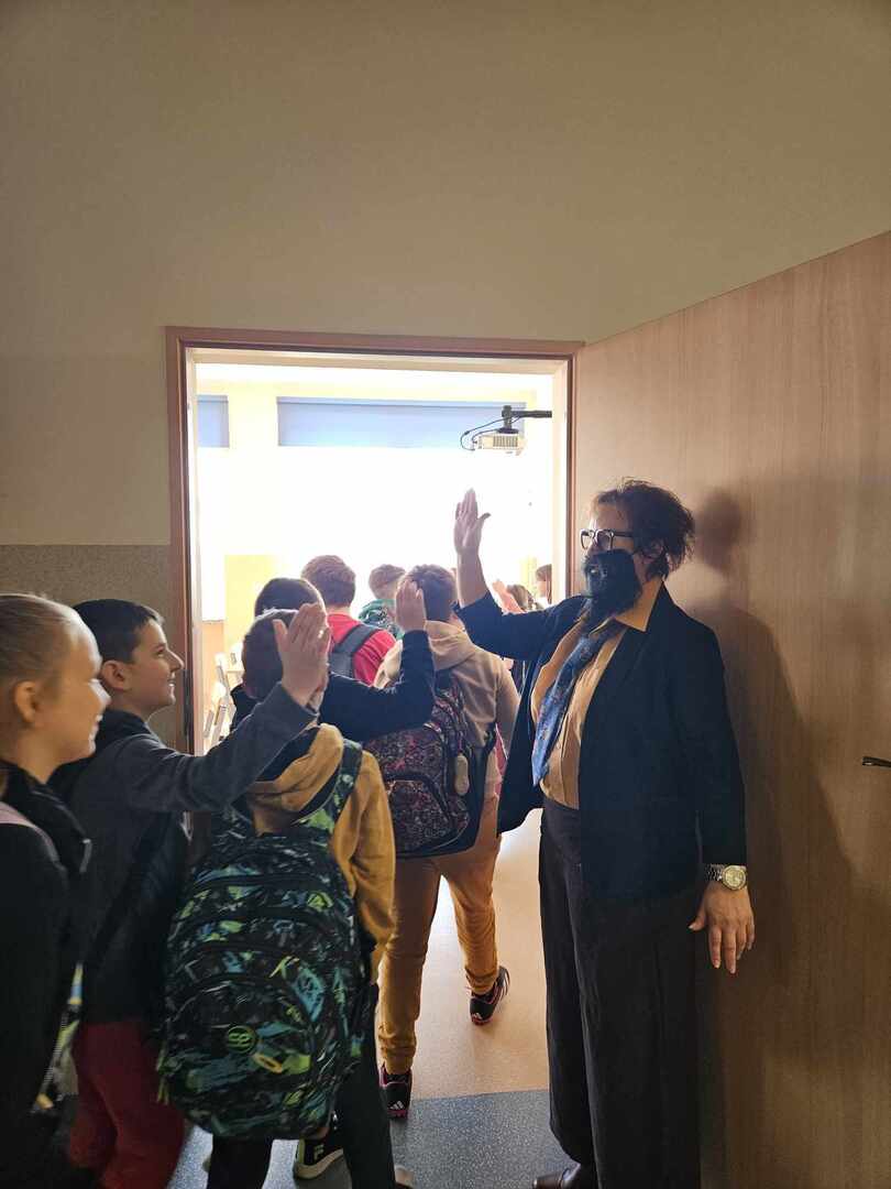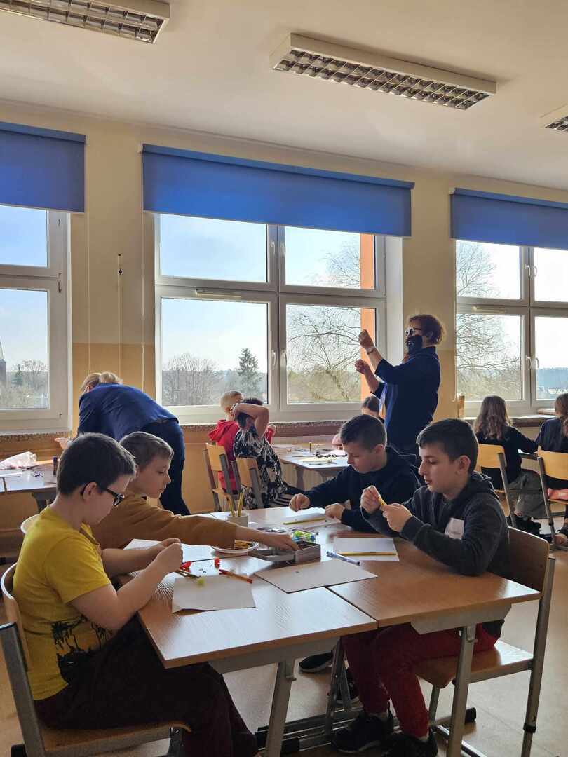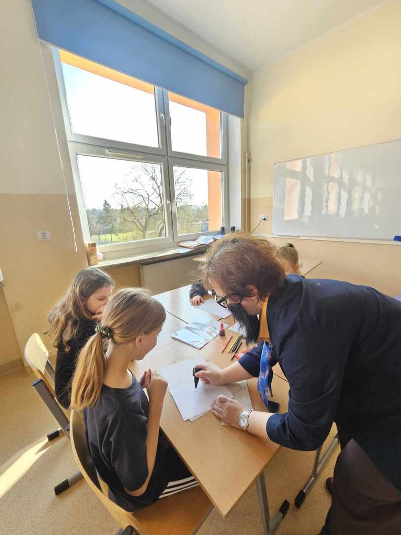 29.02.2024 r. naszą szkołę odwiedził pan Kleks. Do swojej Akademii zaprosił klasę IV b. Na początku uczniowie otrzymali nowe imiona, zaczynające się na literę „A”. Nie była to zwyczajna lekcja języka polskiego. Dzieci miały do wykonania nietypowe zadania. Jedną z lekcji w Akademii było przędzenie liter. Czwartoklasiści z uplecionej włóczki musieli ułożyć literę, nakleić ją na kartkę i ułożyć wyrazy rozpoczynające się na nią. Przy zadaniu zatytułowanym „Kleksografia” uczniowie po wykonaniu kilku kleksów na kartce, zginali ją, tak aby kleksy się odbiły, dorysowywali odpowiednie kreski i kropki, nadawali im konkretny kształt i musieli utworzyć rymowankę o tym, co powstało dzięki kleksom. Przy zadaniu „Dania z niezwykłej kuchni” dzieci miały możliwość wcielenia się w pana Kleksai przy pomocy przygotowanych przedmiotów stworzyć własne fantastyczne dania, a następnie podać przepis umożliwiający jego przygotowanie. W „Rupieciarni” znalazło się kilka niezwykłych przedmiotów, z których należało wybrać trzy i opisać, w jaki nadzwyczajny sposób mogłyby być wykorzystane w Akademii. W „Przyszywalni guzików” uczniowie musieli zmierzyć się z zadaniem dokładnego przyszycia guzika, tak aby nie odpadł i nie został zgubiony przez szpaka Mateusza. Wszyscy poradzili sobie z zadaniami znakomicie, dlatego też pan Kleks obiecał, że jeszcze kiedyś odwiedzi naszą szkołę.