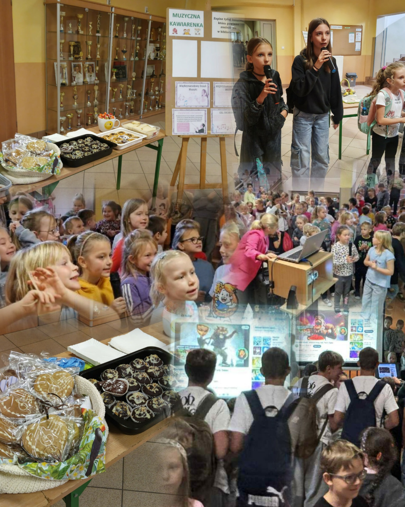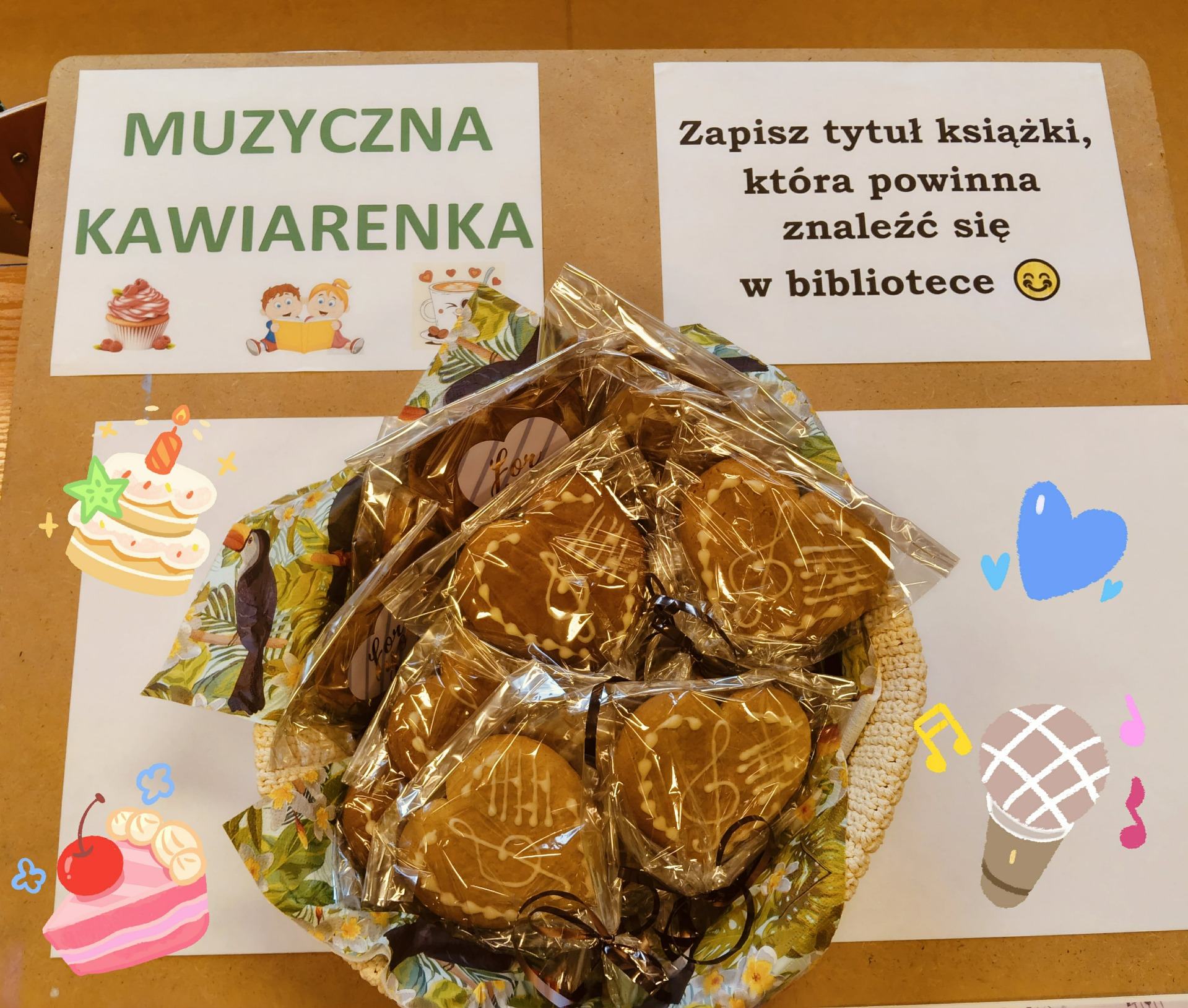 🎼Na przerwach rozbrzmiewała muzyka i głośny śpiew uczniów🎤 😁🎧.🍩Całemu przedsięwzięciu towarzyszyła Muzyczna Kawiarenka🍪, z której zysk zasilił biblioteczne konto. 🤗 Pieniążki, w kwocie 465 zł, zostaną przeznaczone na zakup nowości czytelniczych zaproponowanych przez uczniów.🙂➡️📖