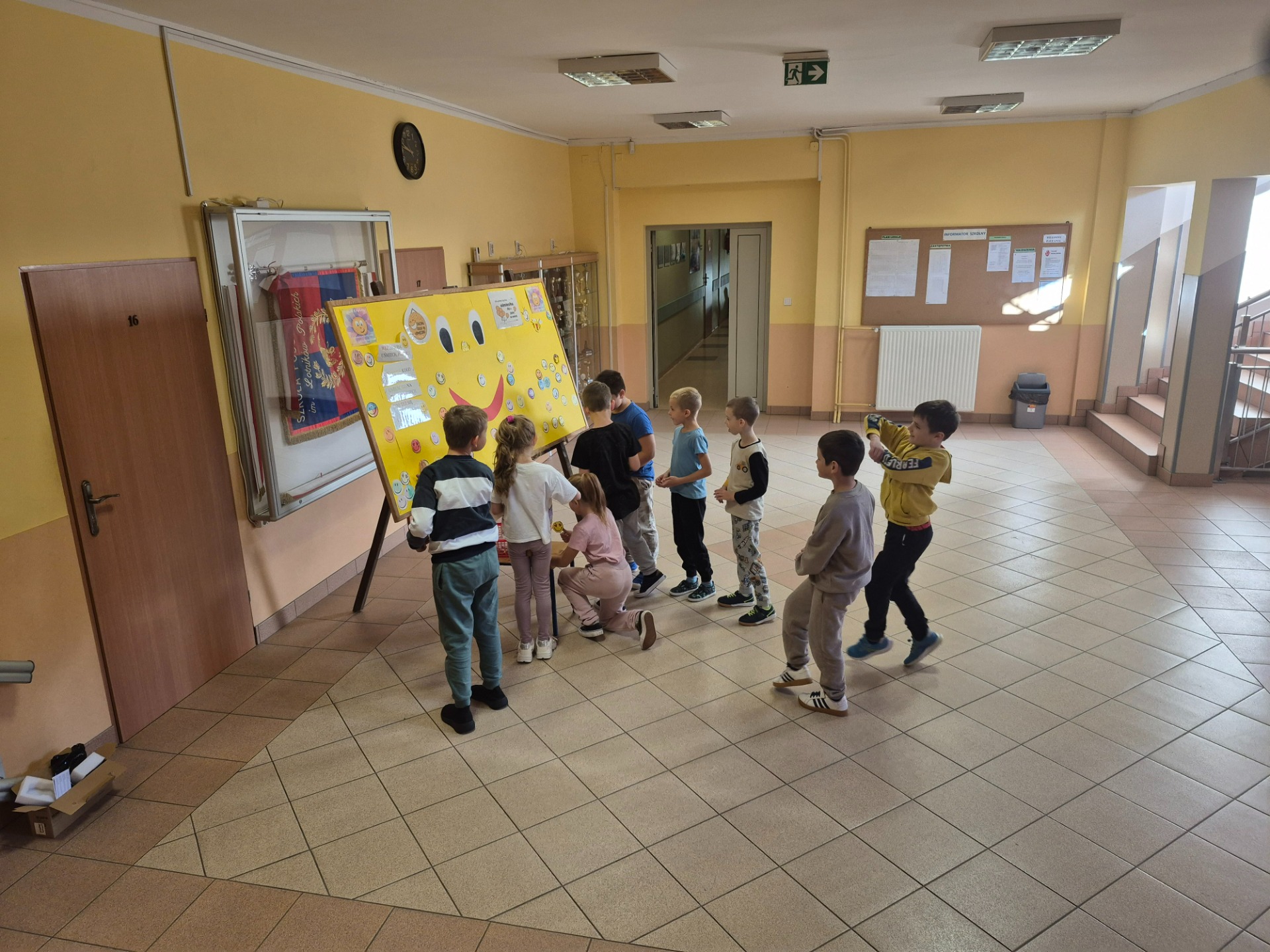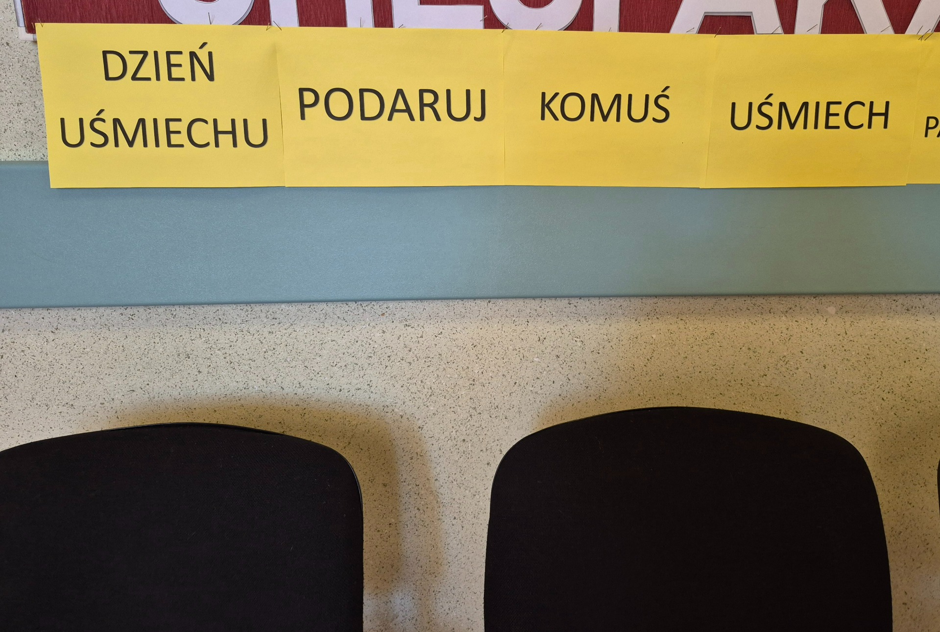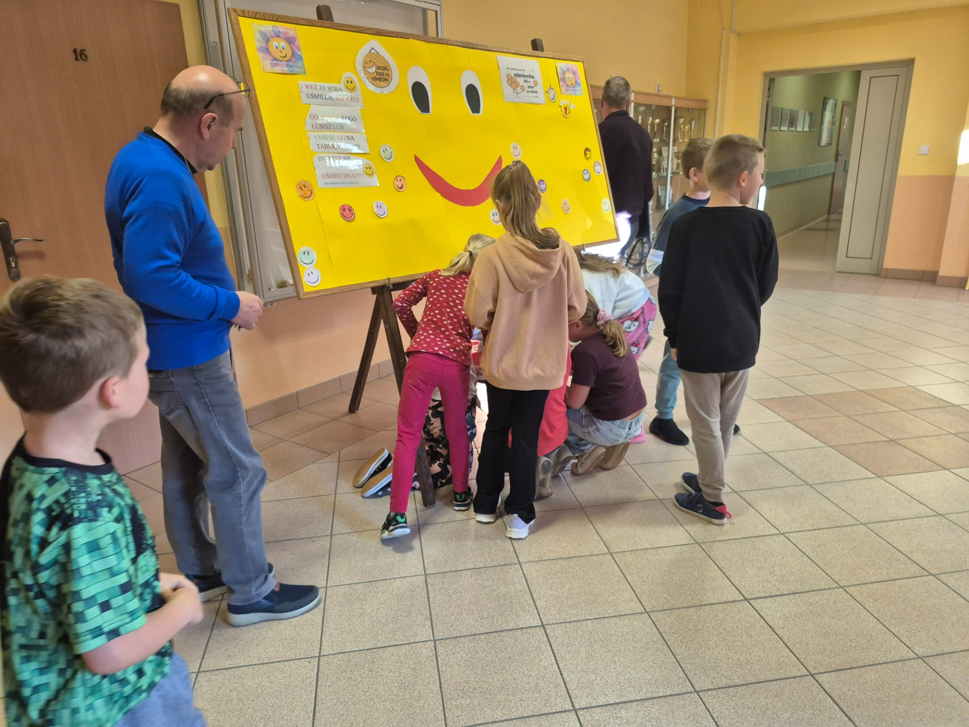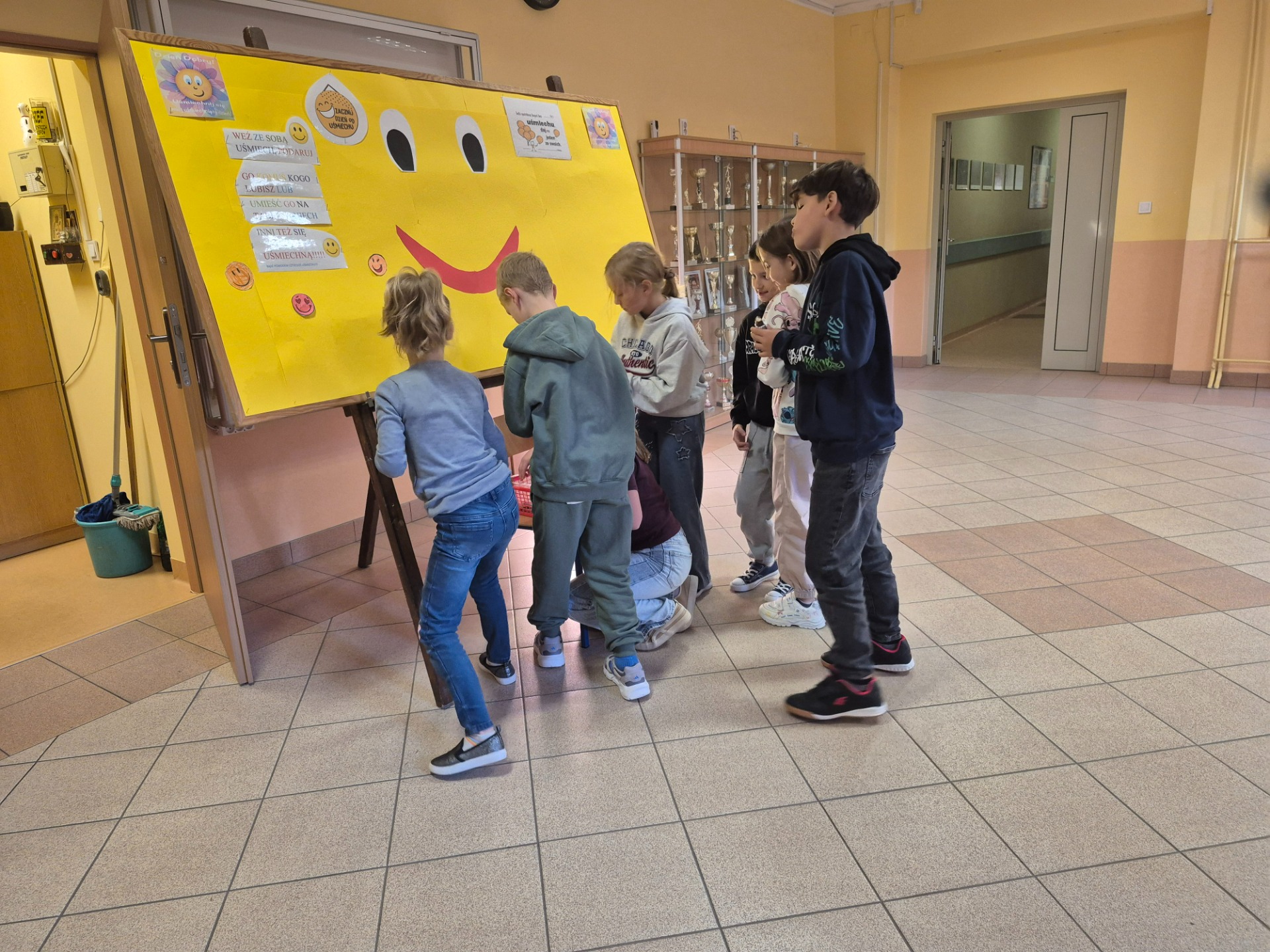 W naszej szkole obchodziliśmy to sympatyczne święto z inicjatywy Samorządu Uczniowskiego w piątek 3 października. Już przy samym wejściu wszystkich „powitała” uśmiechnięta buźka oraz hasło „Weź ze sobą uśmiech, podaruj go komuś kogo lubisz lub umieść go na tablicy- niech inni też się uśmiechną.” Uczniowie kolorowali buźki i przyklejali je na tablicy, ale również przekazywali je innym kolegom, nauczycielom, zabierali do swoich domów. Ten dzień był kolorowy ,wesoły i pełen pozytywnych emocji..