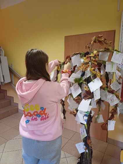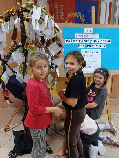 Uczniowie aktywnie włączyli się w przygotowanie gazetki tematycznej pt. „Mój sposób na przemoc”. Centralnym elementem było stworzenie drzewa pomysłów, na którym dzieci umieszczały karteczki z własnymi sposobami na przeciwdziałanie przemocy. Inicjatywa ta pokazała, jak wiele kreatywnych i empatycznych pomysłów potrafią wygenerować uczniowie.
