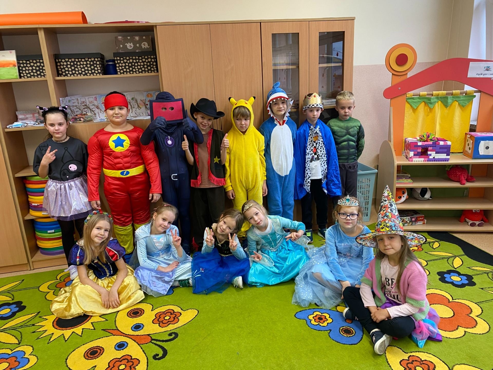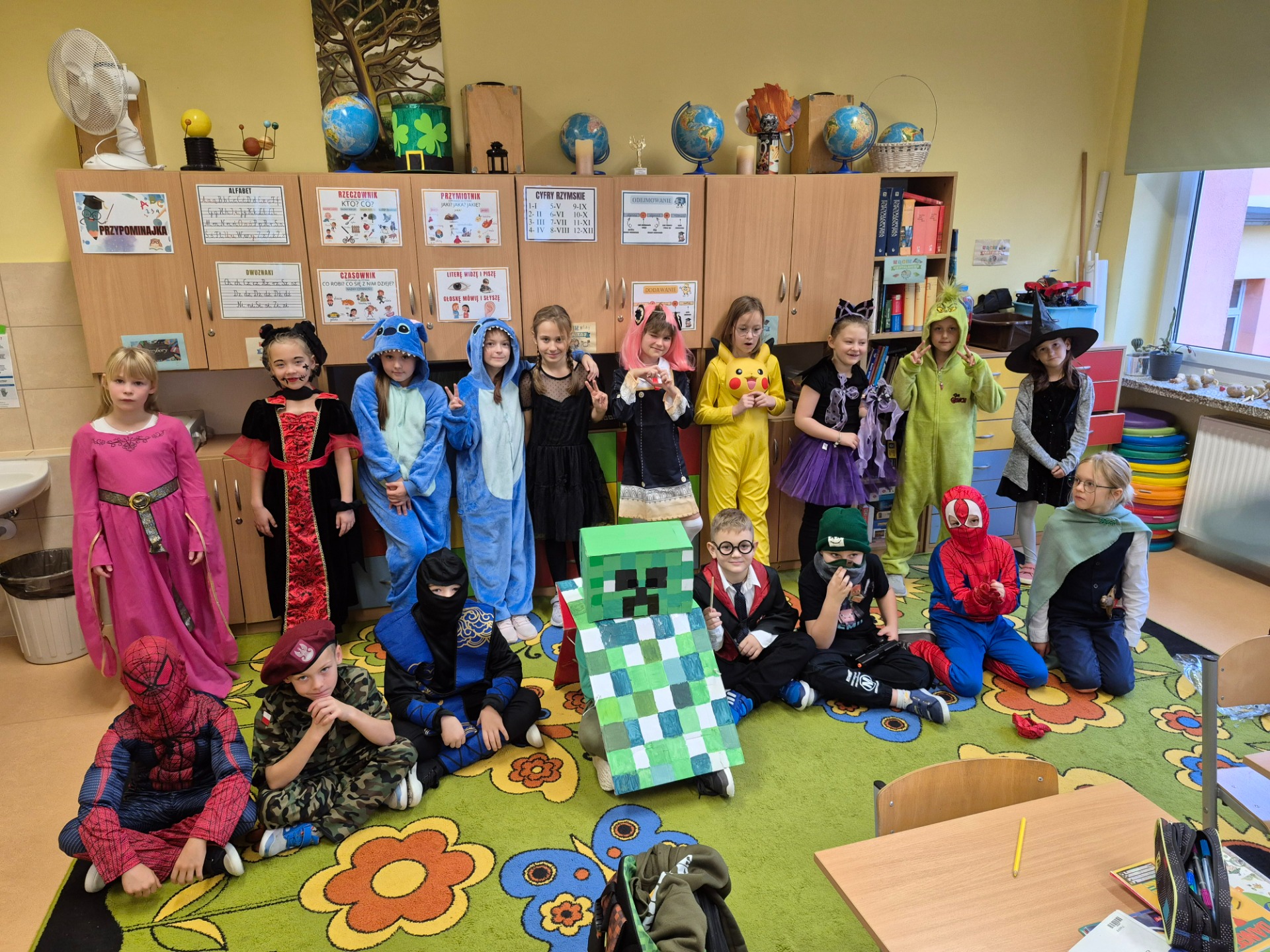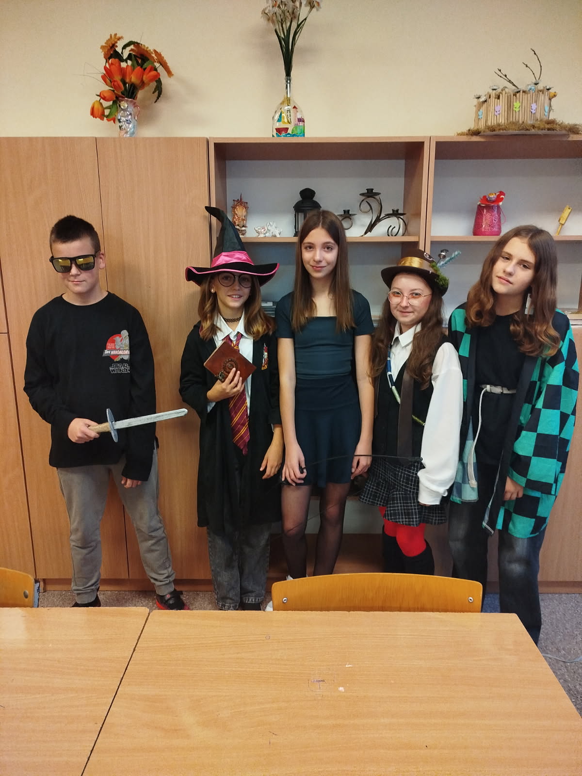 24 PAŹDZIERNIKA 2025r. uczniowie wykonali pierwsze zadanie. Temat zadania brzmiał: DZIEŃ POSTACI Z BAJEK, FILMU, GRY. Zadaniem uczniów było przebranie się za ulubiona postać