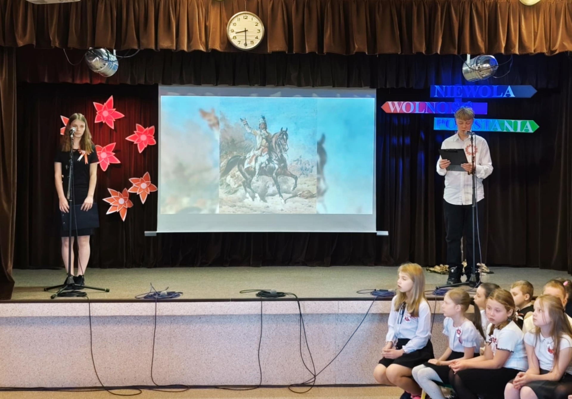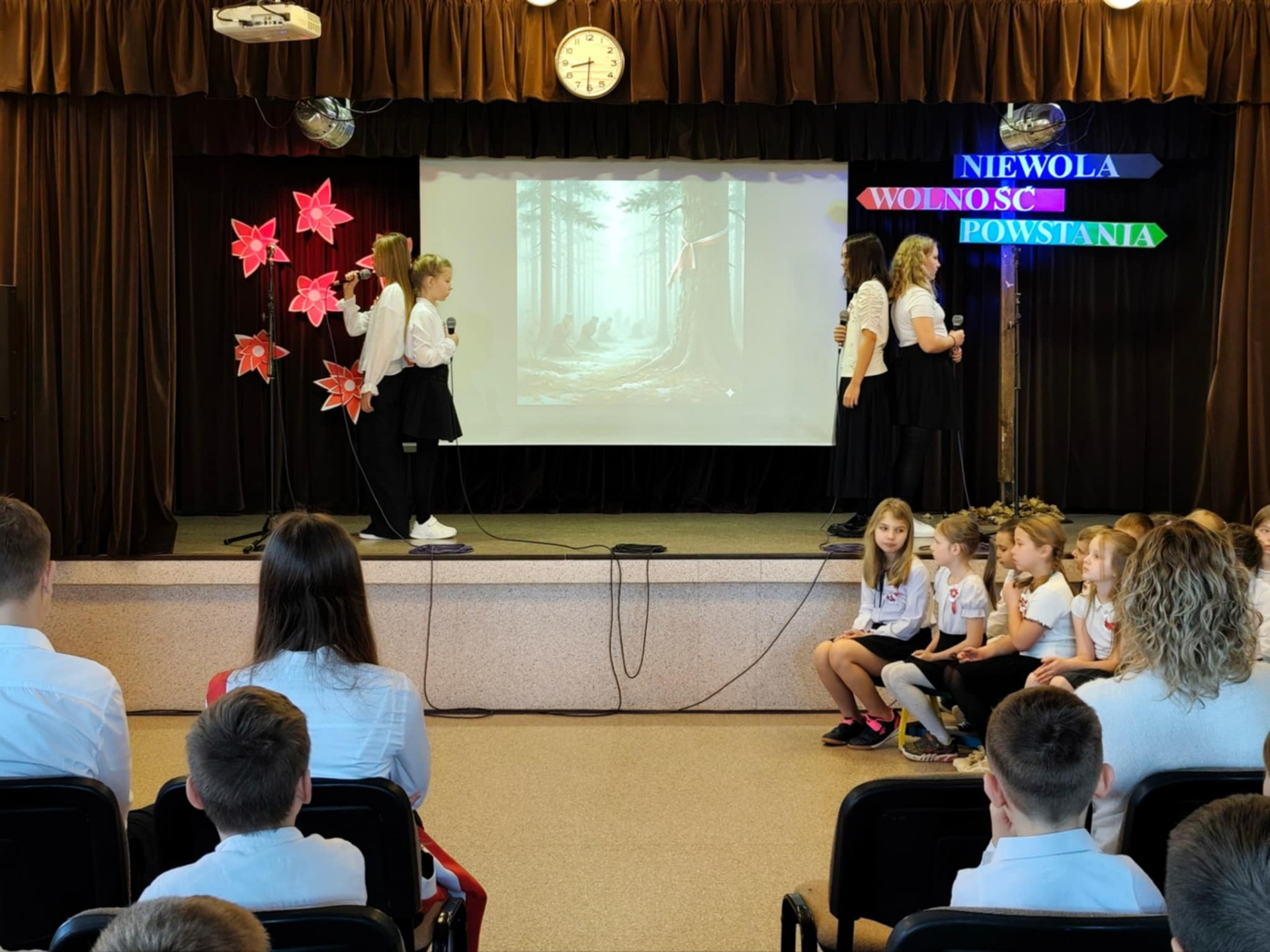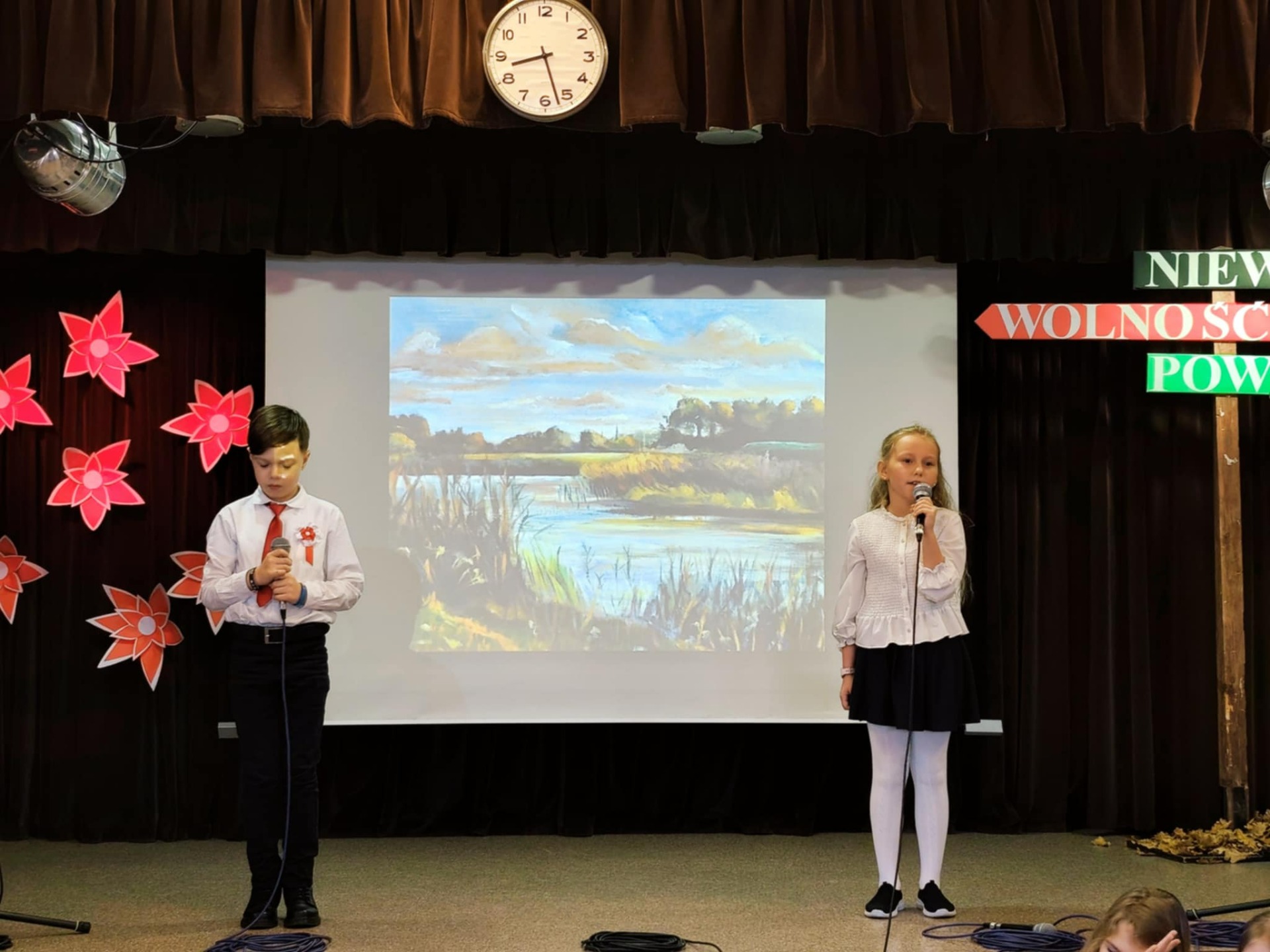 Podczas uroczystości uczniowie przedstawili krótki rys historyczny, przybliżając najważniejsze wydarzenia prowadzące do odzyskania przez Polskę niepodległości w 1918 roku. Narracja została wzbogacona prezentacją multimedialną, fragmentami poezji patriotycznej oraz piosenkami, które wprowadziły podniosły i wzruszający nastrój.