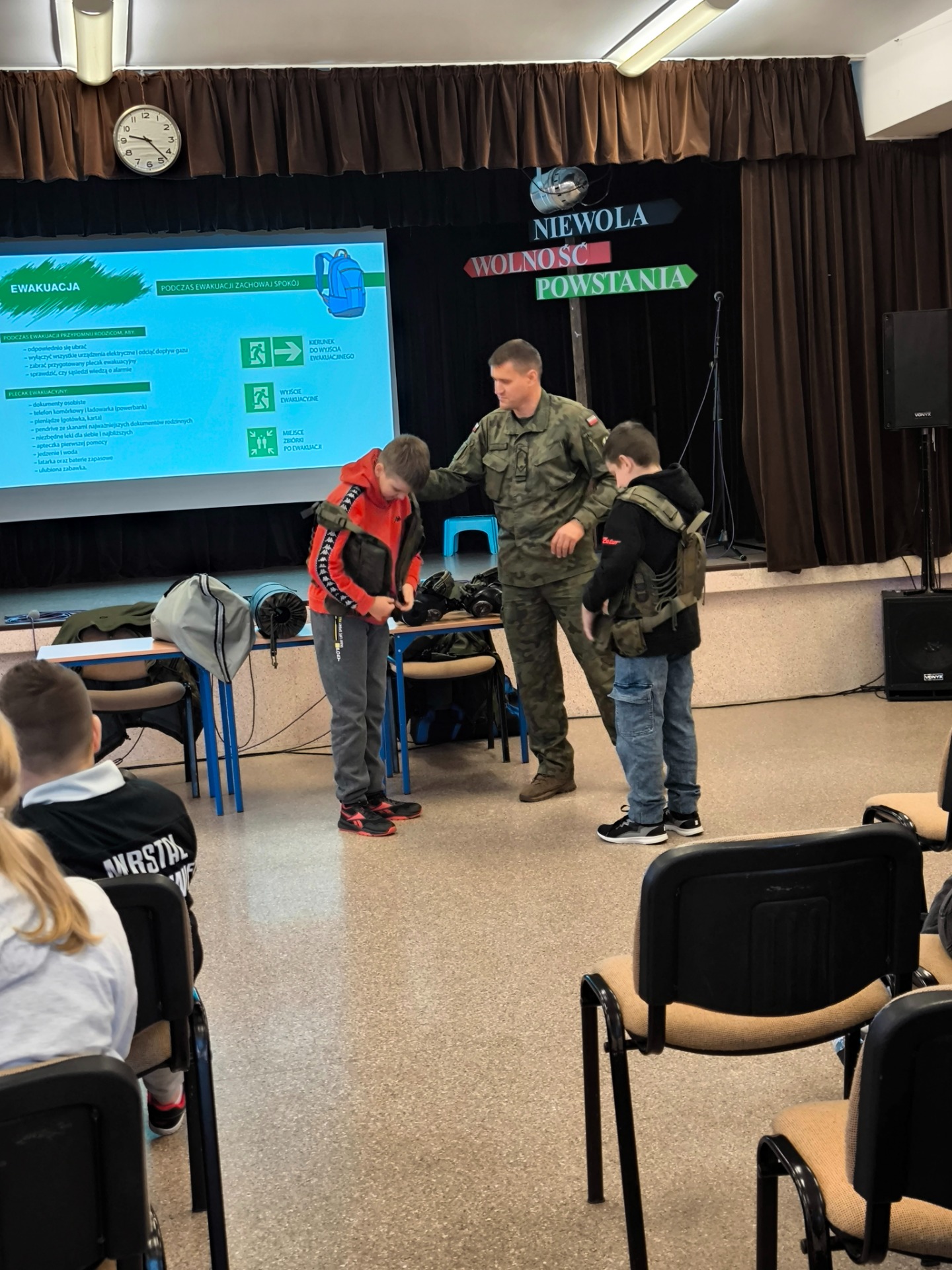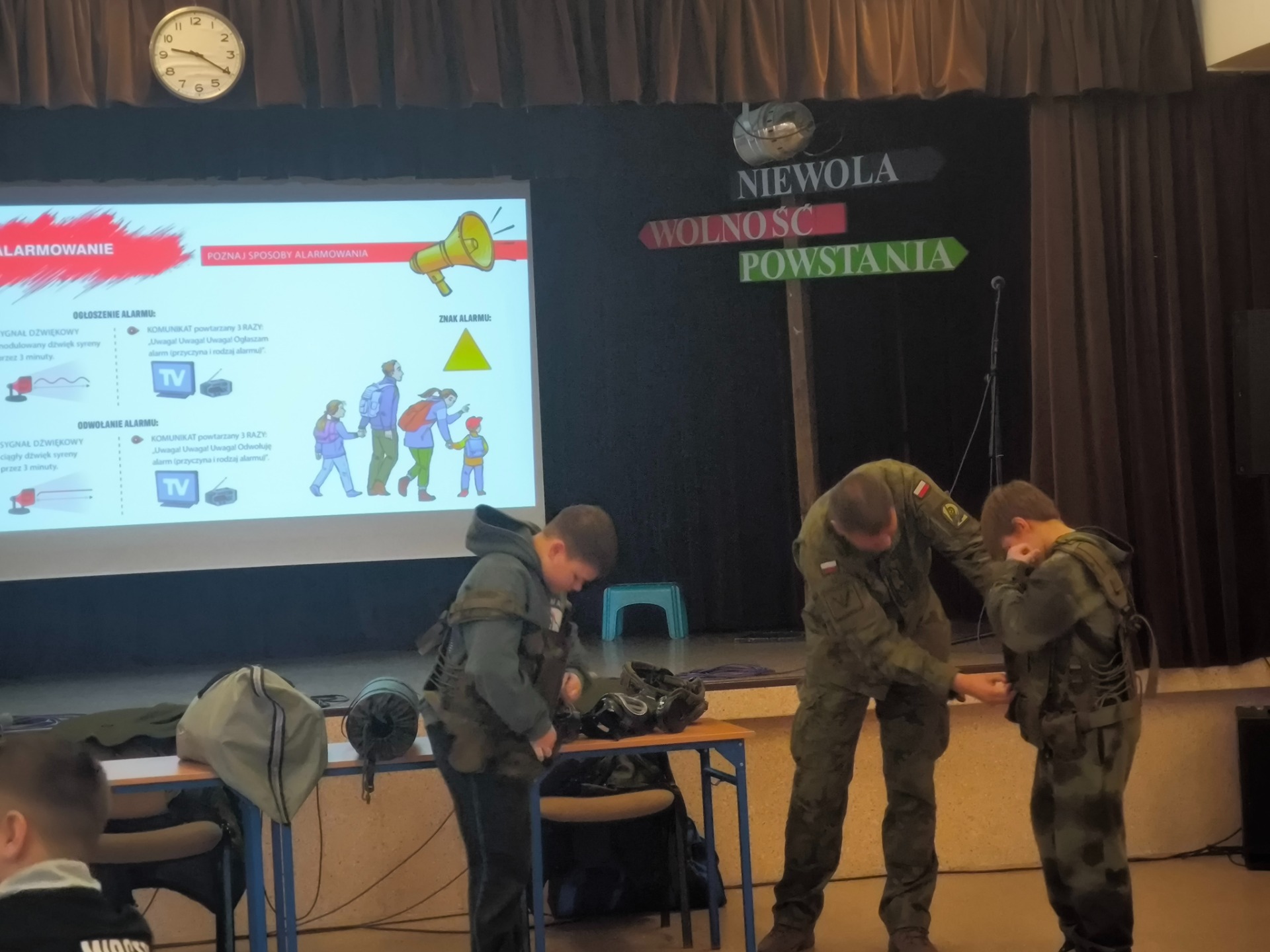 W związku z udziałem szkoły w programie „Edukacja z Wojskiem” ,18 listopada odwiedzili nas żołnierze z 12BBSP w Mirosławcu oraz ratownik medyczny. W tym roku udział w szkoleniu wzięły klasy VI.