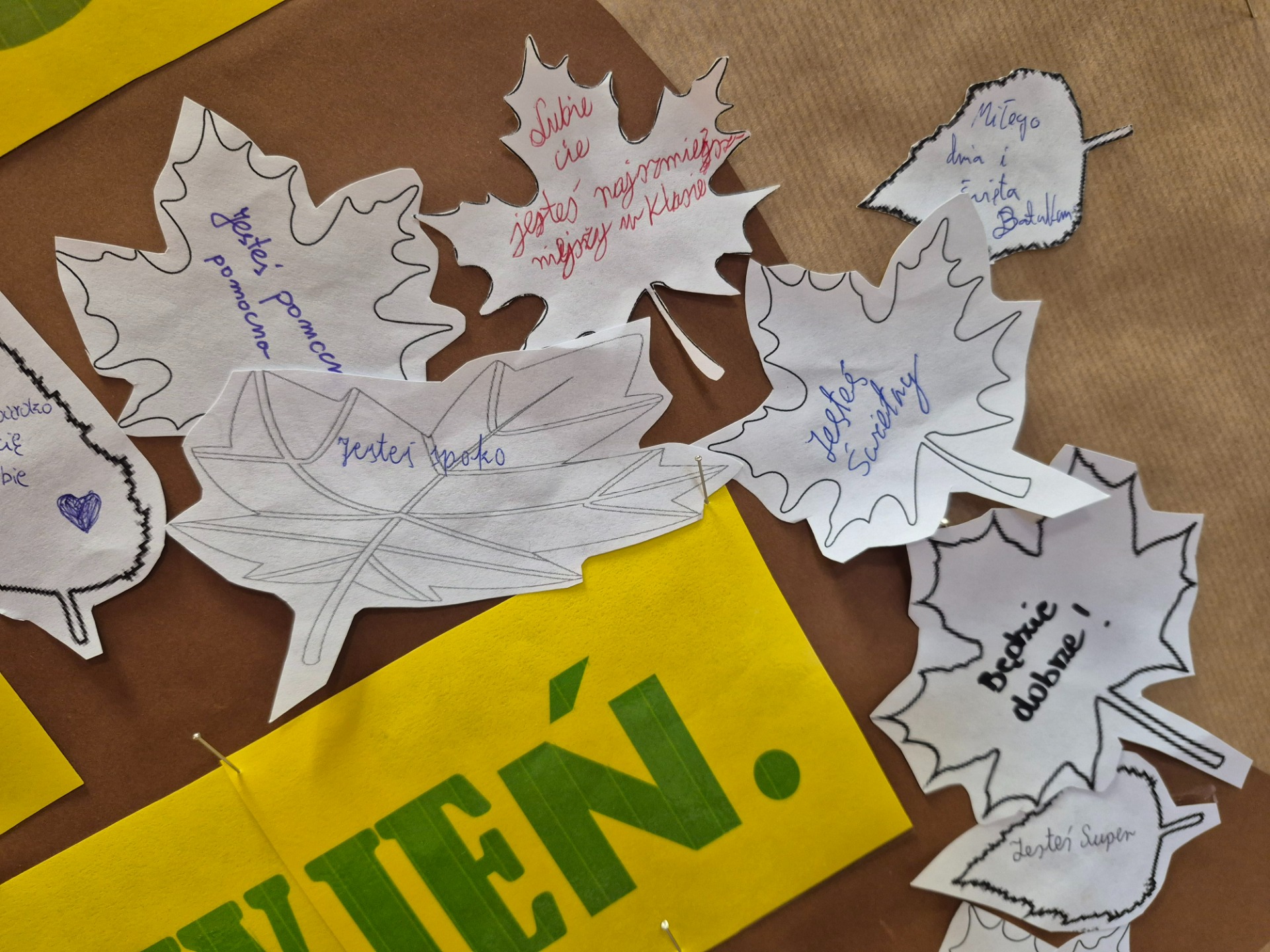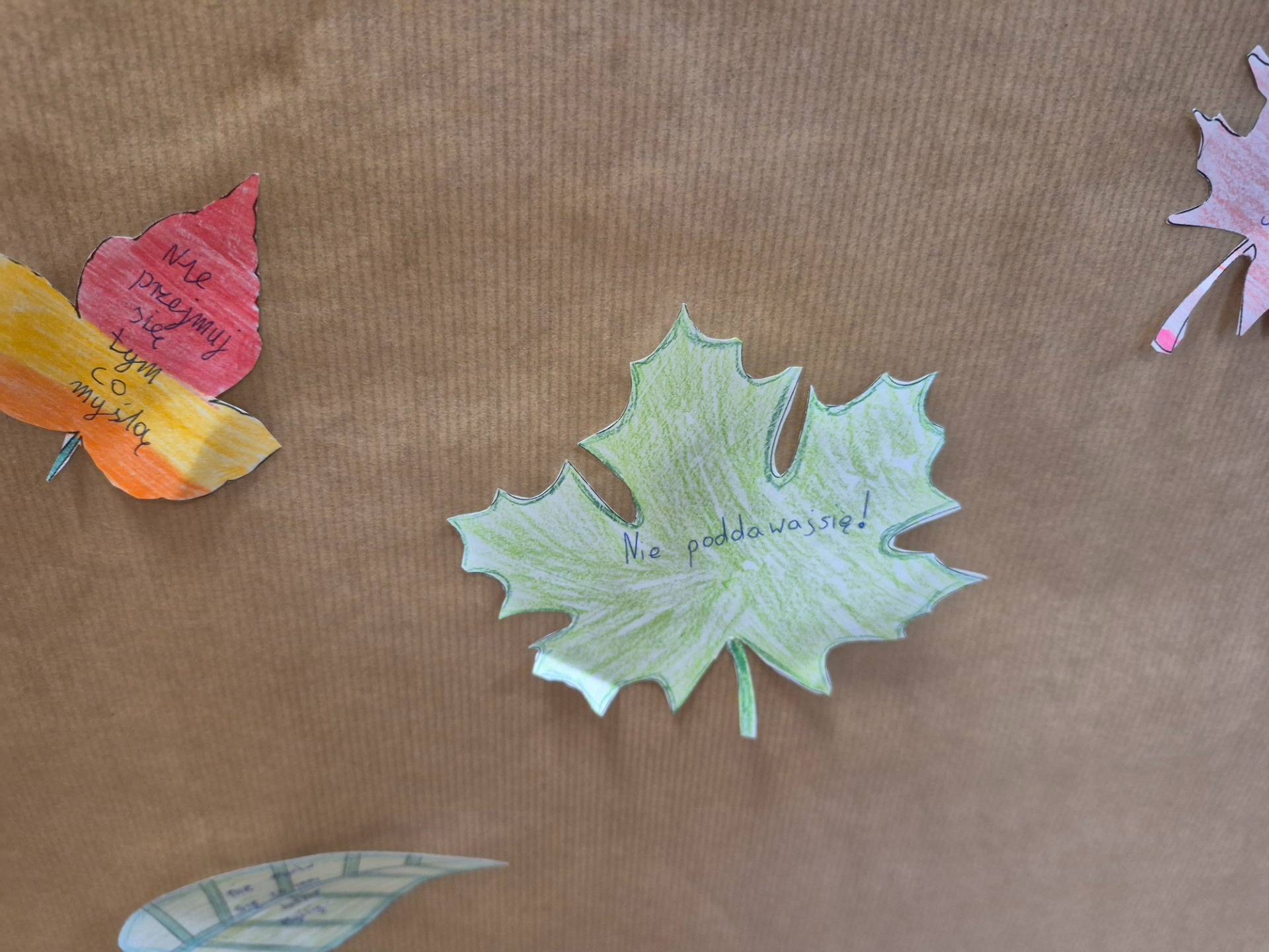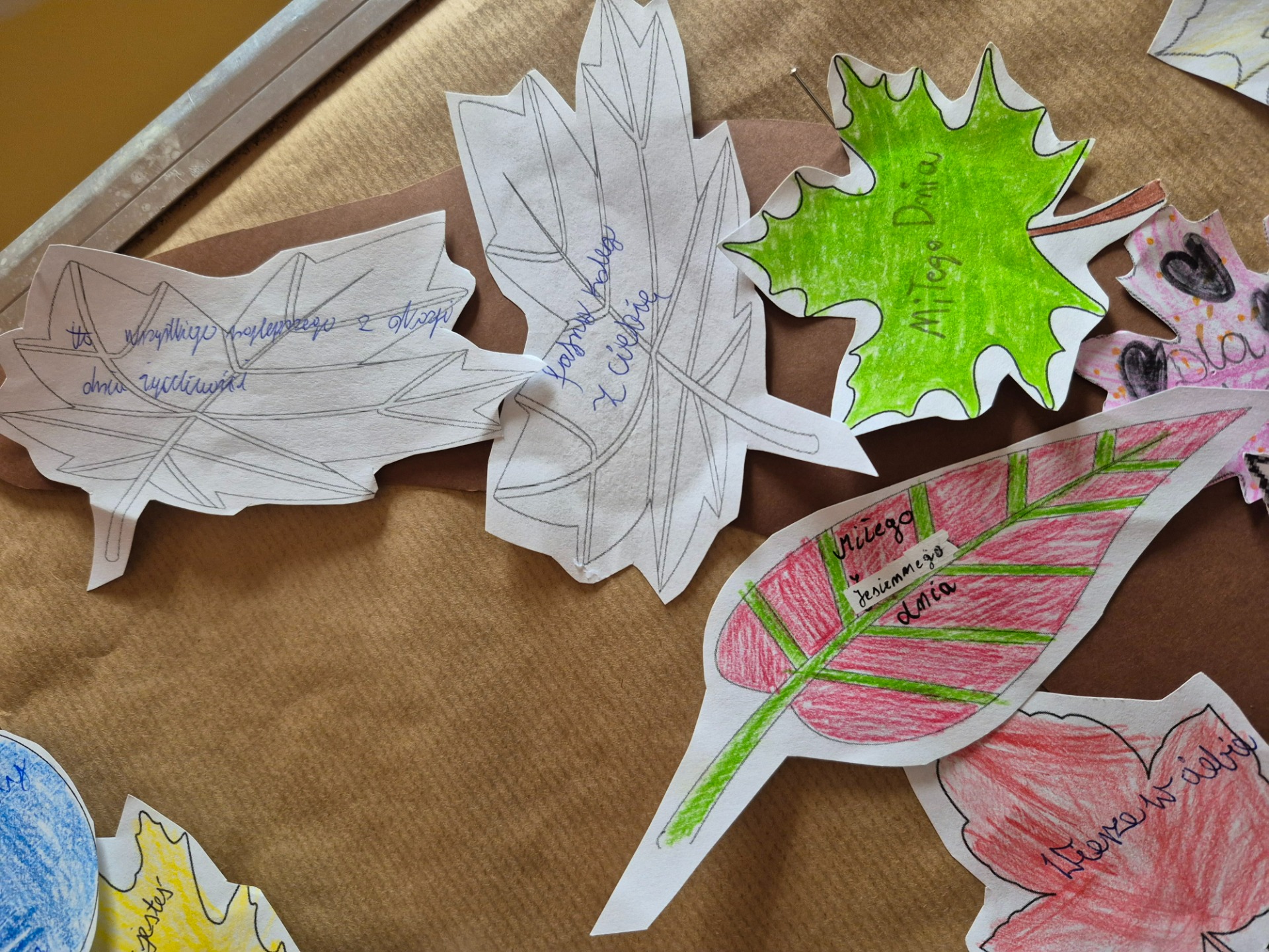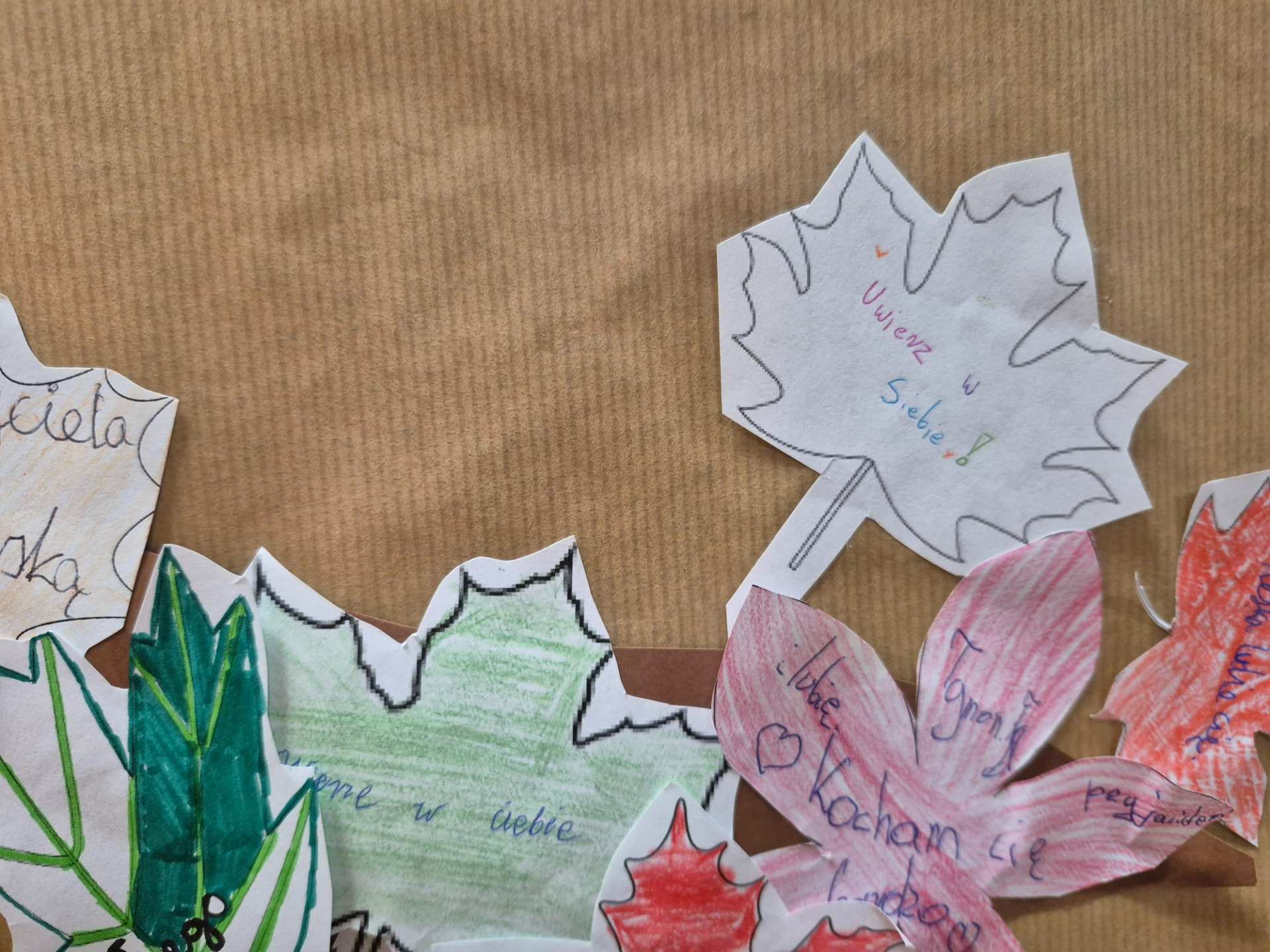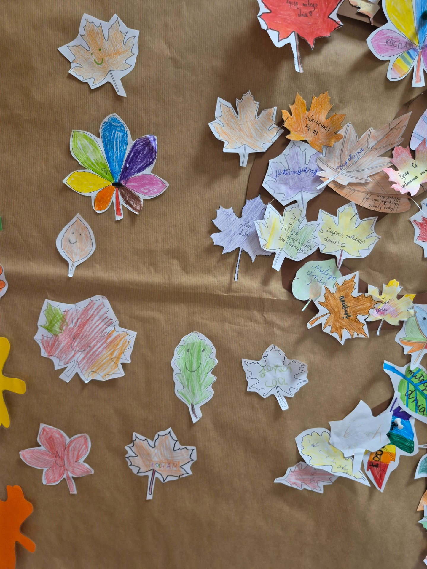 W tym dniu na szkolnym korytarzu pojawiło się Drzewo Życzliwości i Pozdrowień. Uczniowie otrzymali liście, które mogli pokolorować w dowolny sposób, napisać na nich coś miłego- coś co sprawi, że na czyjejś twarzy pojawi się uśmiech. Listek można było podarować komuś innemu lub zawiesić na drzewie, by jak najwięcej osób mogło przeczytać dobre słowo. Na koniec dnia nasze drzewo było piękne nie tylko od kolorów, ale również od pięknych słów.