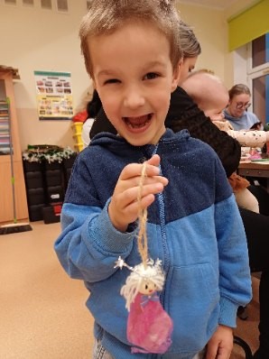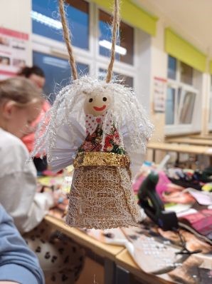 Dzieci wraz z rodzicami projektowały i wykonywały własne, niepowtarzalne aniołki na choinkę.