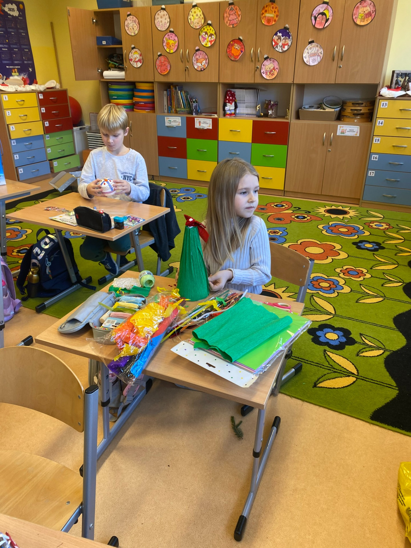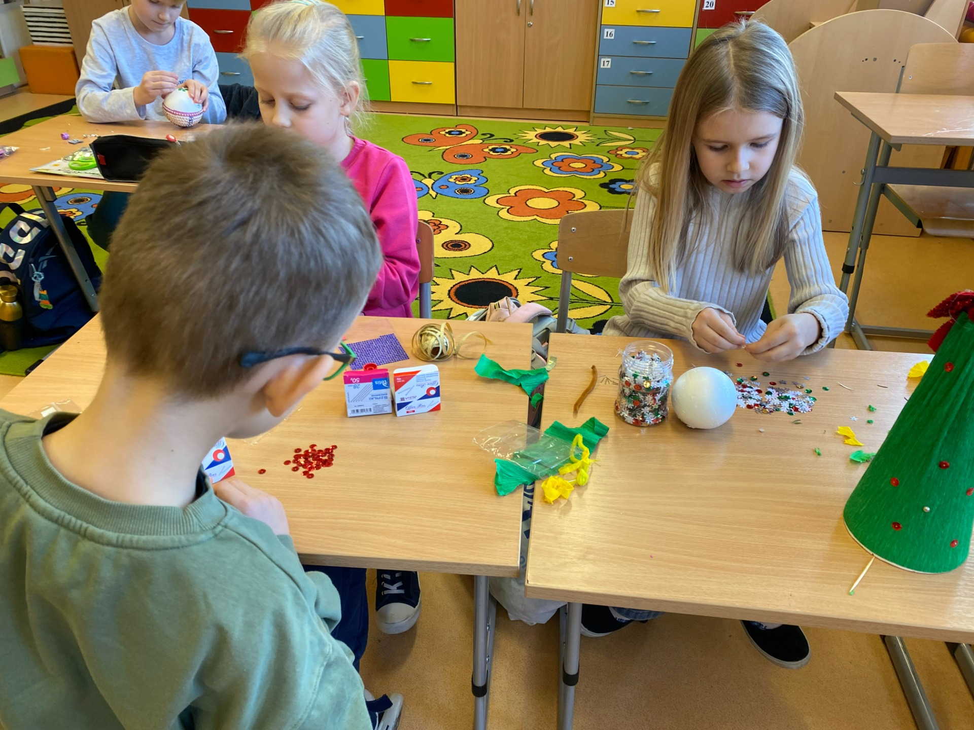16 grudnia chętni uczniowie z klas pierwszych uczestniczyli w warsztatach bożonarodzeniowych, podczas których bawili się w świątecznych "małych inżynierów" rozwijając zdolności manualne, wyobraźnię i poznając tradycje świąteczne. Dzieci samodzielnie wykonały piękne ozdoby (wianki, stroiki, choinki, bombki, łańcuchy). Po zakończeniu zajęć podziwiały efekty swojej pracy. Warsztaty okazały się nie tylko czasem twórczym, ale także doskonałą okazją do zanurzenia się w magię świąt. Organizatorami warsztatów były wychowawczynie klas pierwszych.